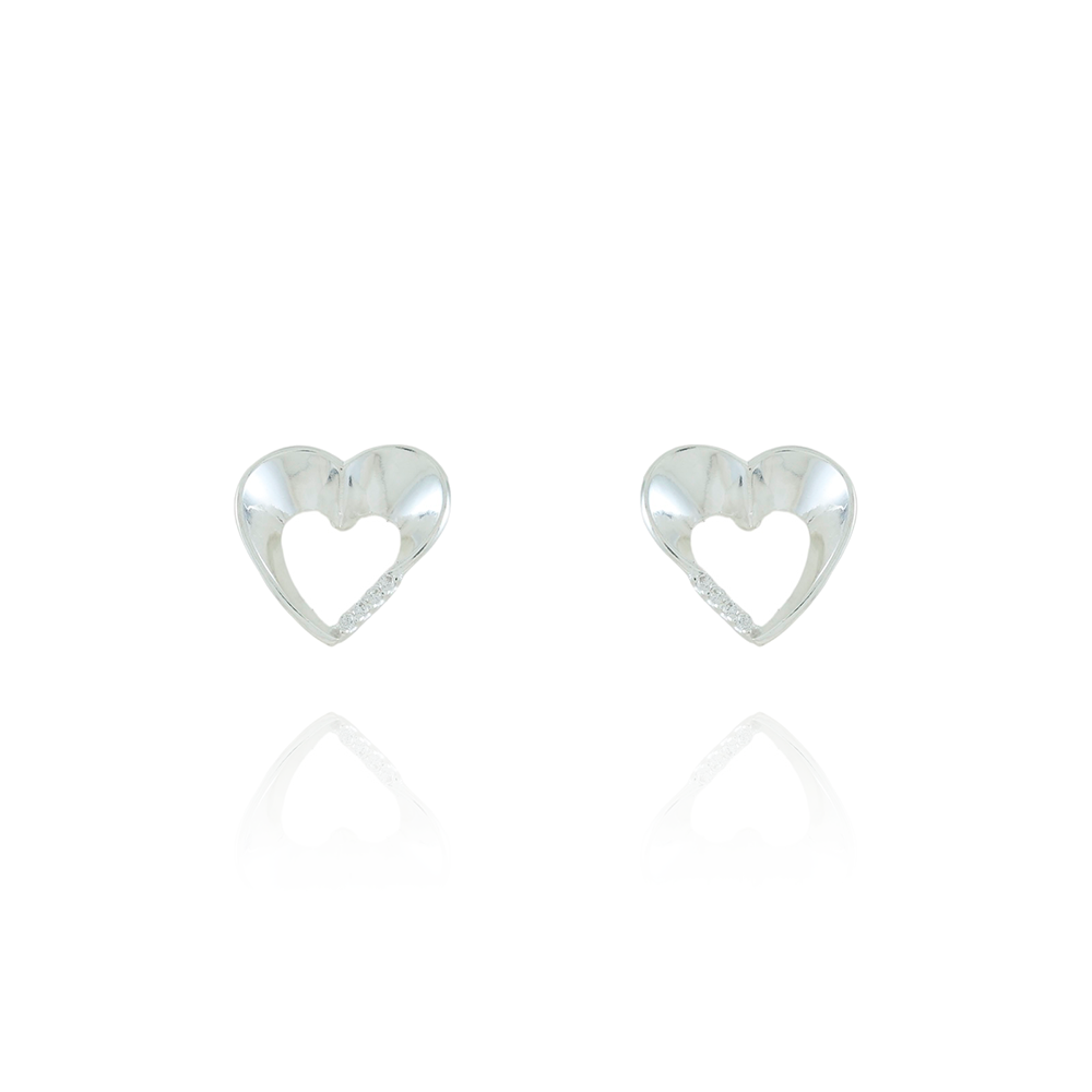 Ag-Br-1261 Brinco De Coração Vazado Cravejado De Zircônias Cristais - Prata 925.