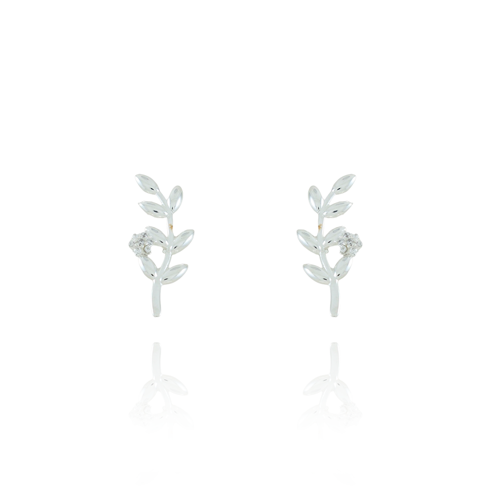 Ag-Br-1263 Brinco De Folha Com Florzinha Cravejada Cristal - Prata 925.