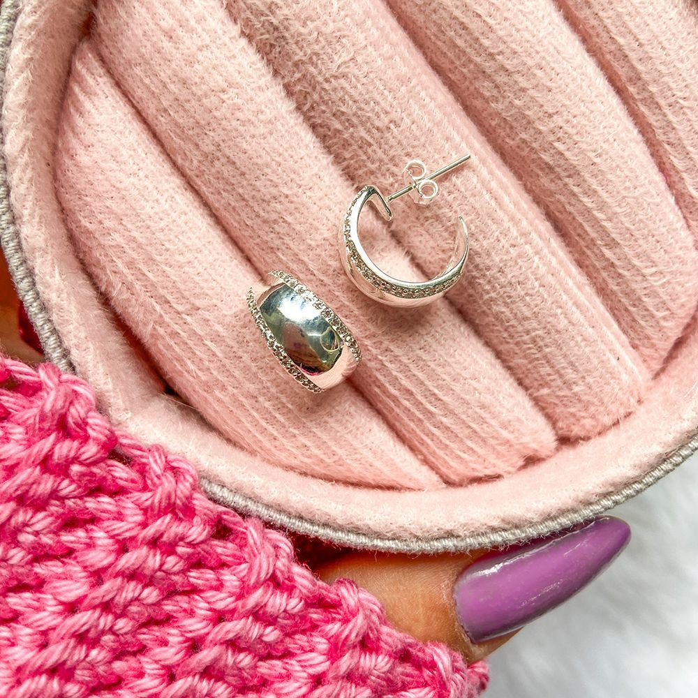 Encante-se com esse brinco!Este lindo BRINCO MEIA ARGOLA CRAVEJADO CRISTAL é feito a PRATA 925 de alta qualidade.