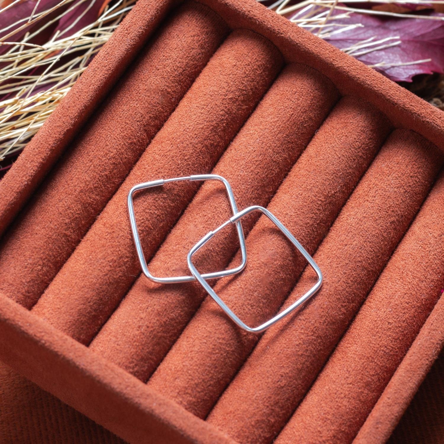 Ag-Bra-289 Brinco De Prata 925 Argola Quadrada Fina (27mm)