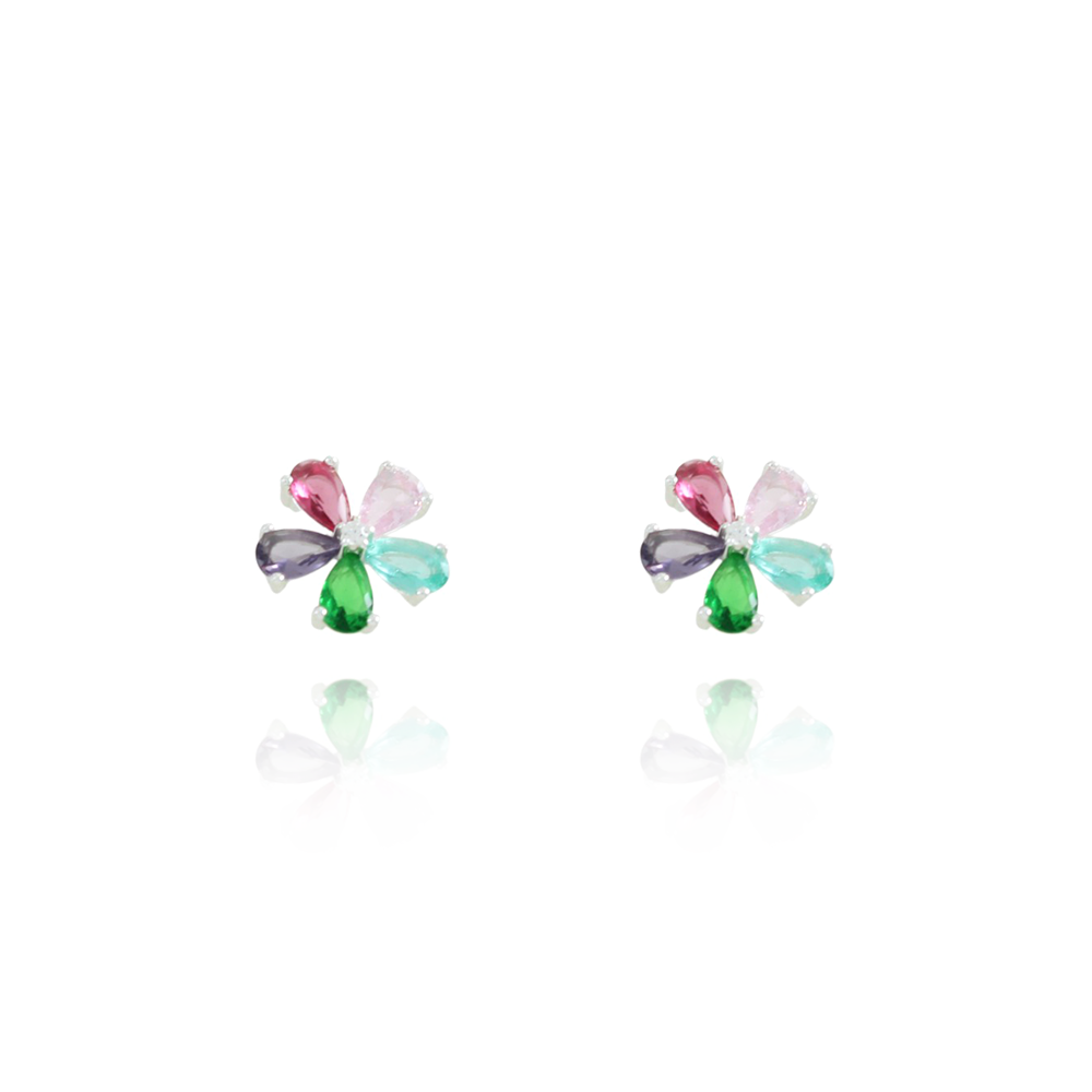 Encante-se com esse brinco!Este lindo brinco DE FLOR CRAVEJADO DE ZIRCÔNIAS COLORIDAS é feito a PRATA 925 de alta qualidade.