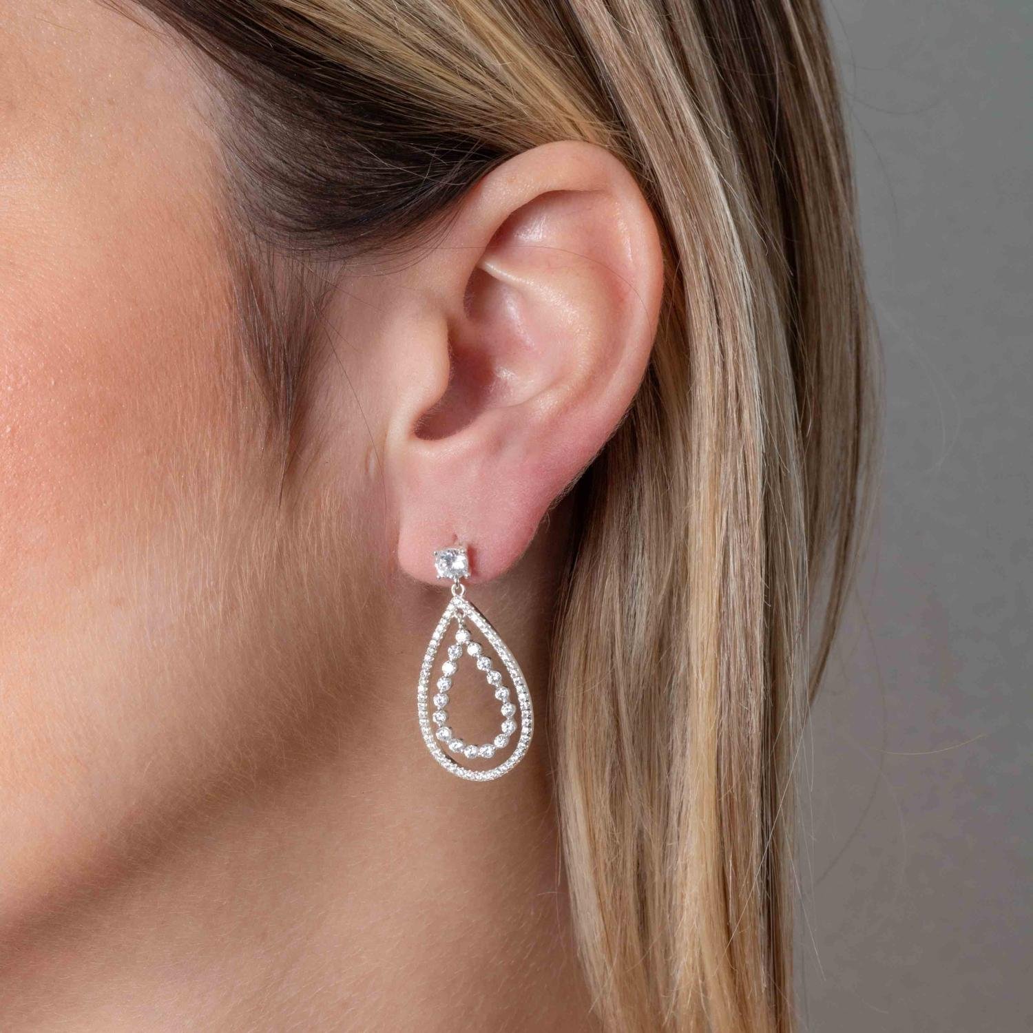 Ag-Bra-372 Brinco Médio Gotas Cravejado Cristal -Prata 925.