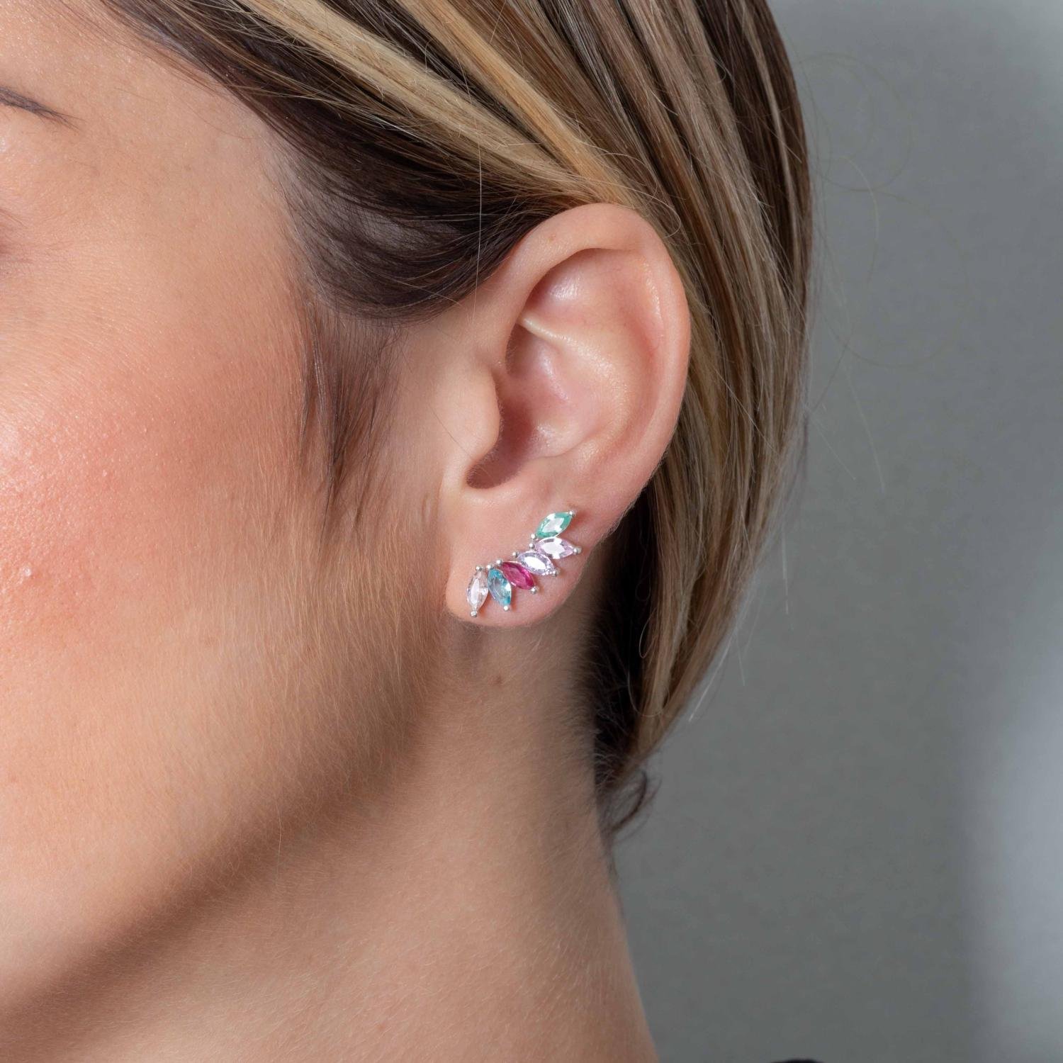 Ag-Bra-389 Brinco Ear Cuff Cravejado Colorido - Prata 925.
