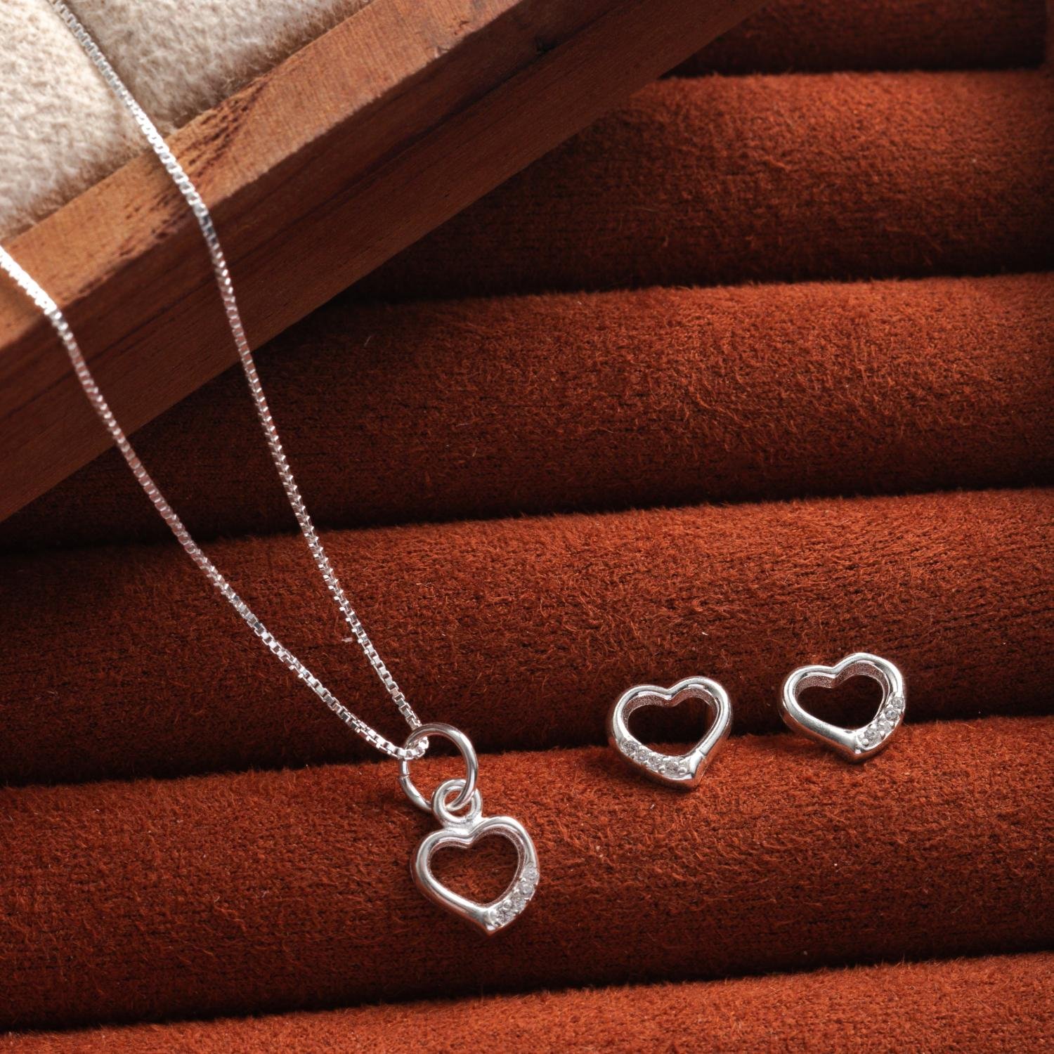 Encante-se com esse conjunto!Este lindo conjunto DE CORAÇÃO CRAVEJADO DE ZIRCÔNIAS CRISTAIS é feito com PRATA 925 de alta qualidade.
