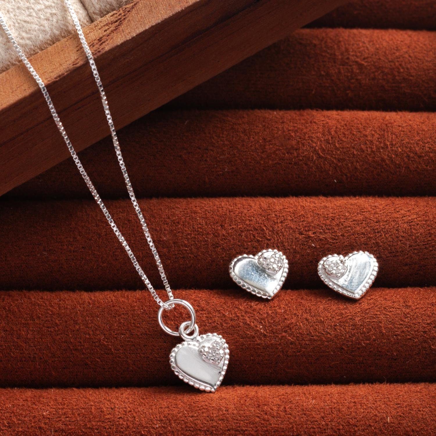 Encante-se com esse conjunto!Este lindo conjunto DE CORAÇÃO CRAVEJADO CRISTAL é feito com PRATA 925 de alta qualidade.