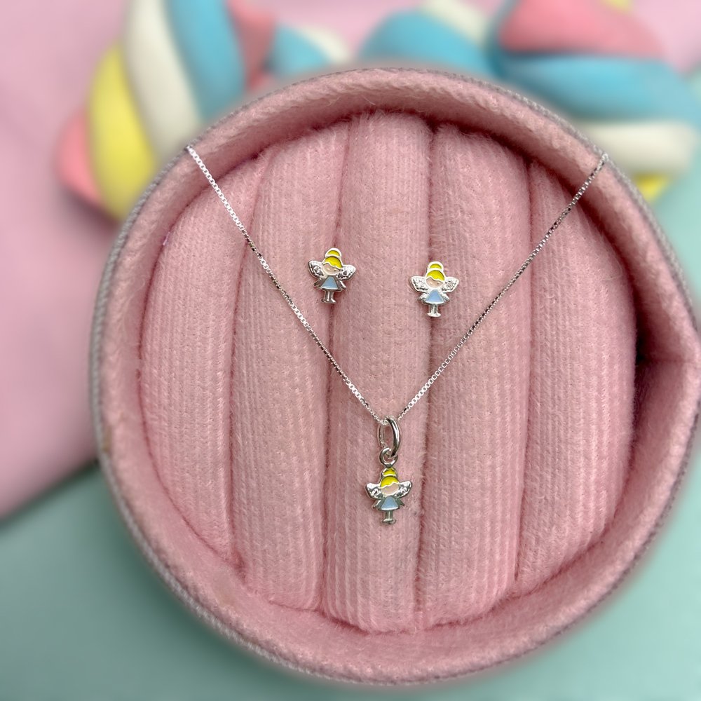 Encante-se com esse conjunto!Este lindo conjunto INFANTIL FADINHA é feito com PRATA 925 de alta qualidade.