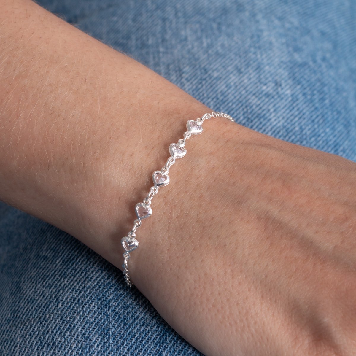 Ag-Psa-413 Pulseira De Corações Cristais Em Prata 925.