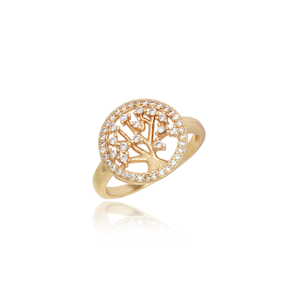 Encante-se com esse anel!Este lindo Anel Árvore da Vida com Zircônias Cristais é feito com LATÃO BANHADO A OURO 18K de alta qualidade.