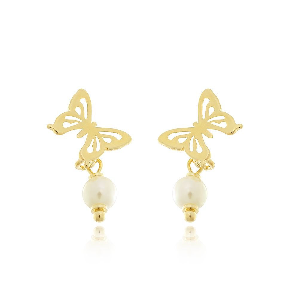 Encante-se com esse brinco!Este lindo brinco DE BORBOLETA COM PÉROLA é feito com LATÃO BANHADO A OURO 18K de alta qualidade.