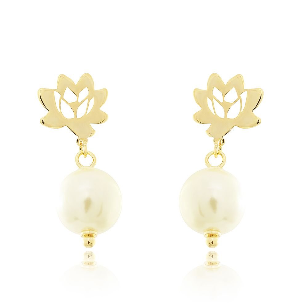 Encante-se com esse brinco!Este lindo brinco DE FLOR COM PÉROLA é feito com LATÃO BANHADO A OURO 18K de alta qualidade.