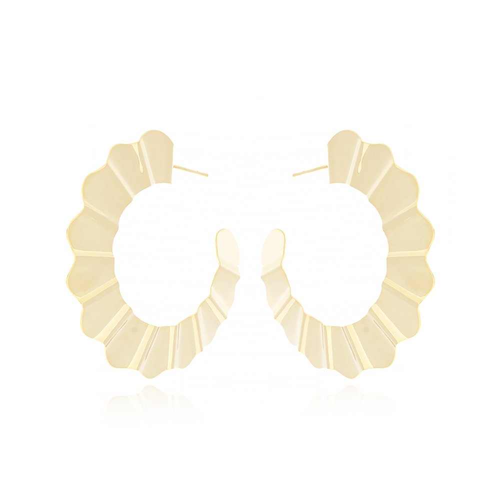 Encante-se com esse brinco!Este lindo brinco MEIA ARGOLA DETALHADA é feito com LATÃO BANHADO A OURO 18K de alta qualidade.