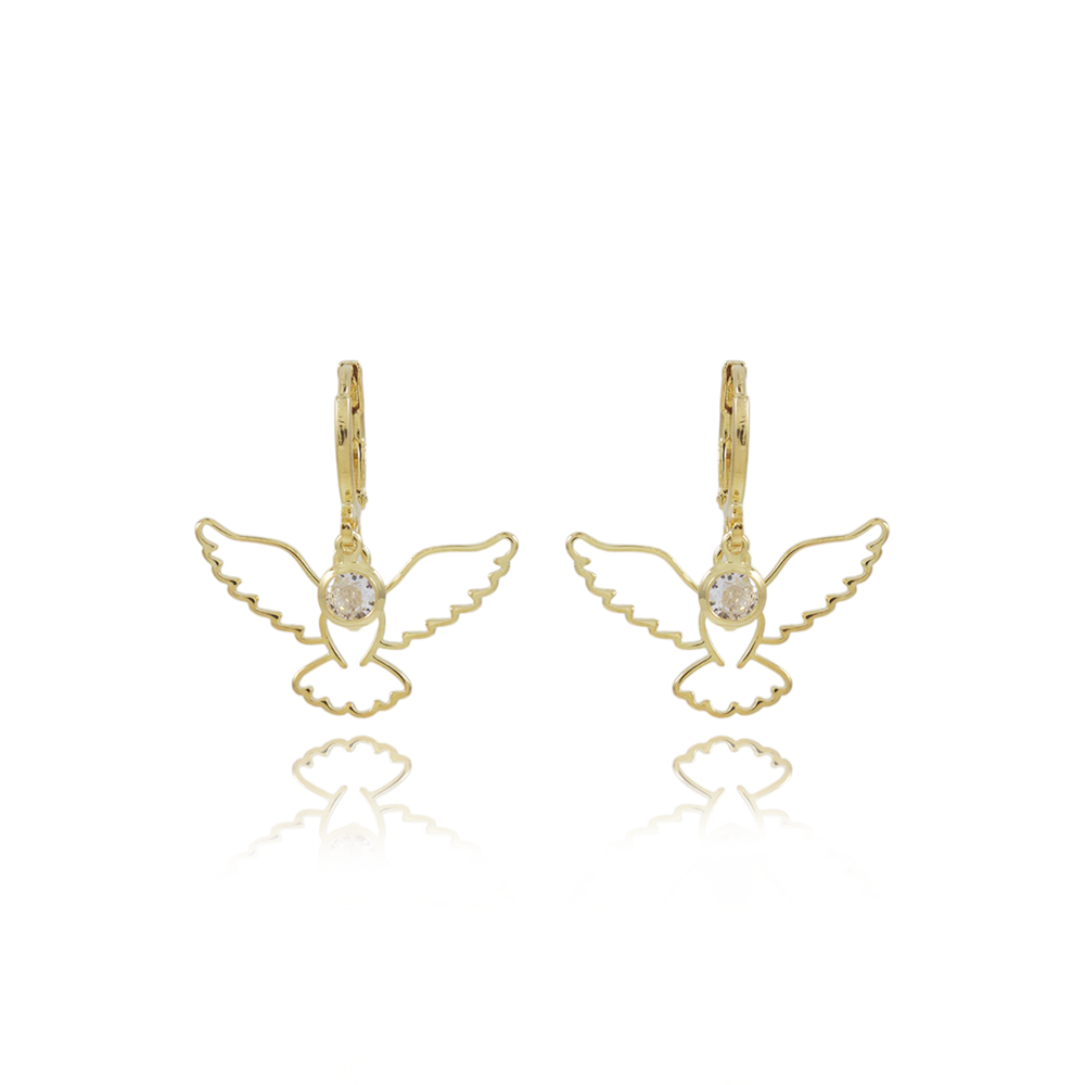 Encante-se com esse brinco!Este lindo brinco ARTICULADO ESPÍRITO SANTO E ZIRCÔNIA CRISTAL é feito com LATÃO BANHADO A OURO 18K de alta qualidade.