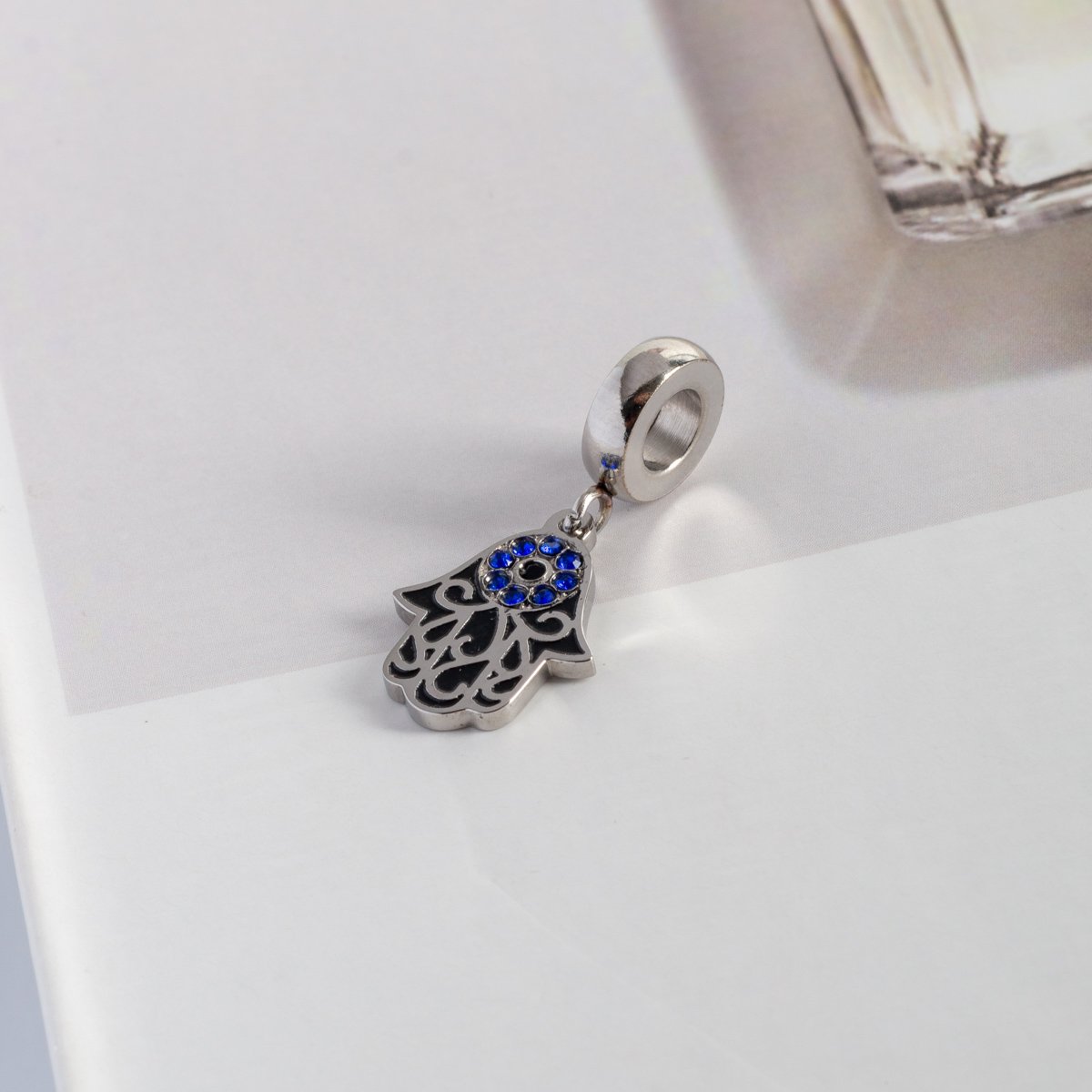 Bq-09-Aço Inox Berloque Mão De Fátima Azul Escuro.