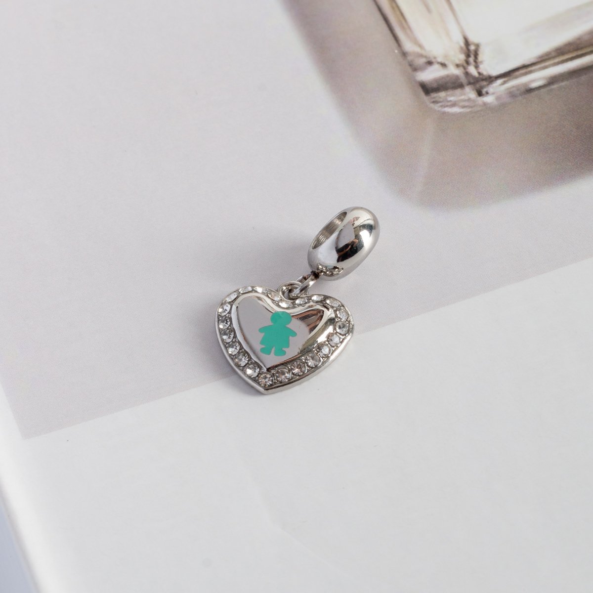 Bq-134-Aço Inox Berloque Coração Menino Verde Claro + Cristal.