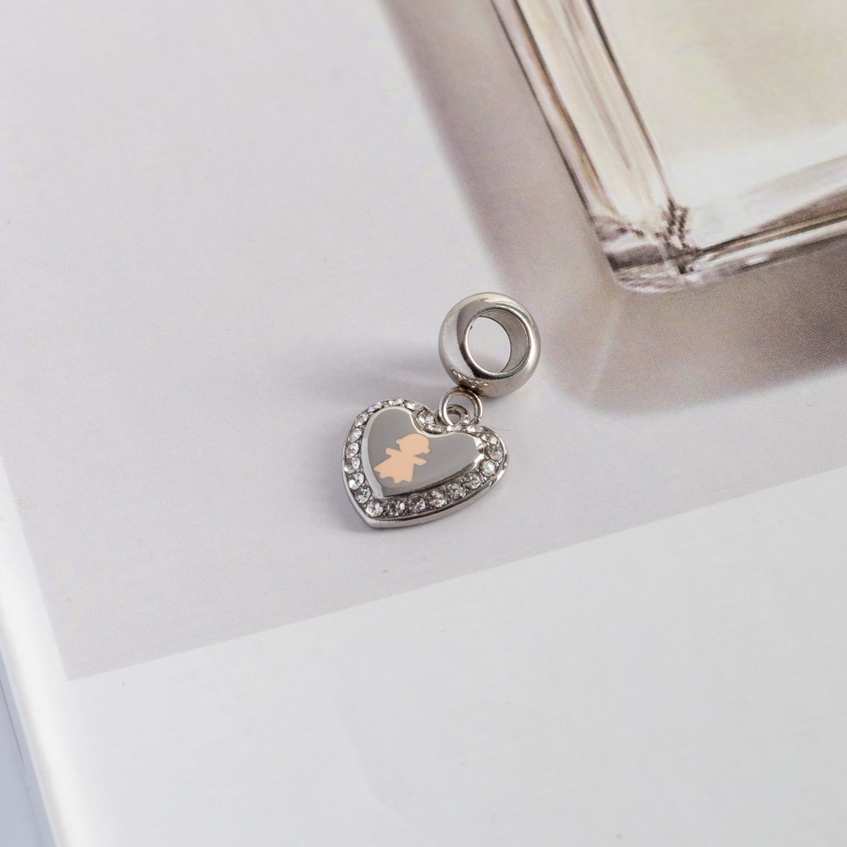 Bq-135-Aço Inox Berloque Coração Menina Rosa Claro + Cristal.