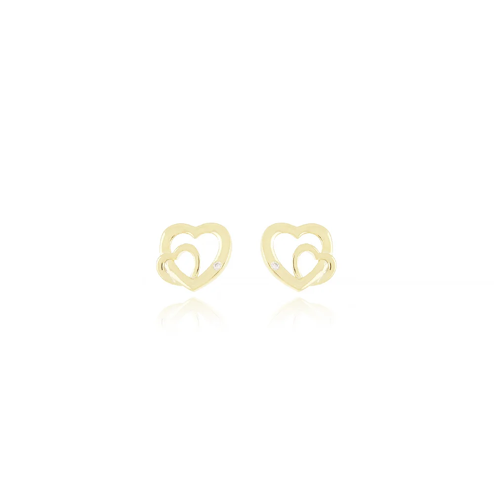 Encante-se com esse brinco!Este lindo brinco DE CORAÇÕES ENTRELAÇADOS CRAVEJADO COM ZIRCÔNIAS é feito com LATÃO BANHADO A OURO 18K de alta qualidade.