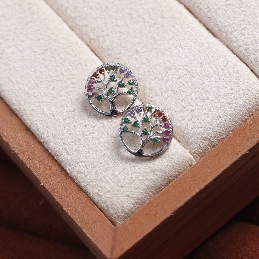 Encante-se com esse brinco!Este lindo brinco ÁRVORE DA VIDA CRAVEJADA DE ZIRCÔNIAS COLORIDAS é feito com LATÃO BANHADO A RÓDIO BRANCO de alta qualidade.