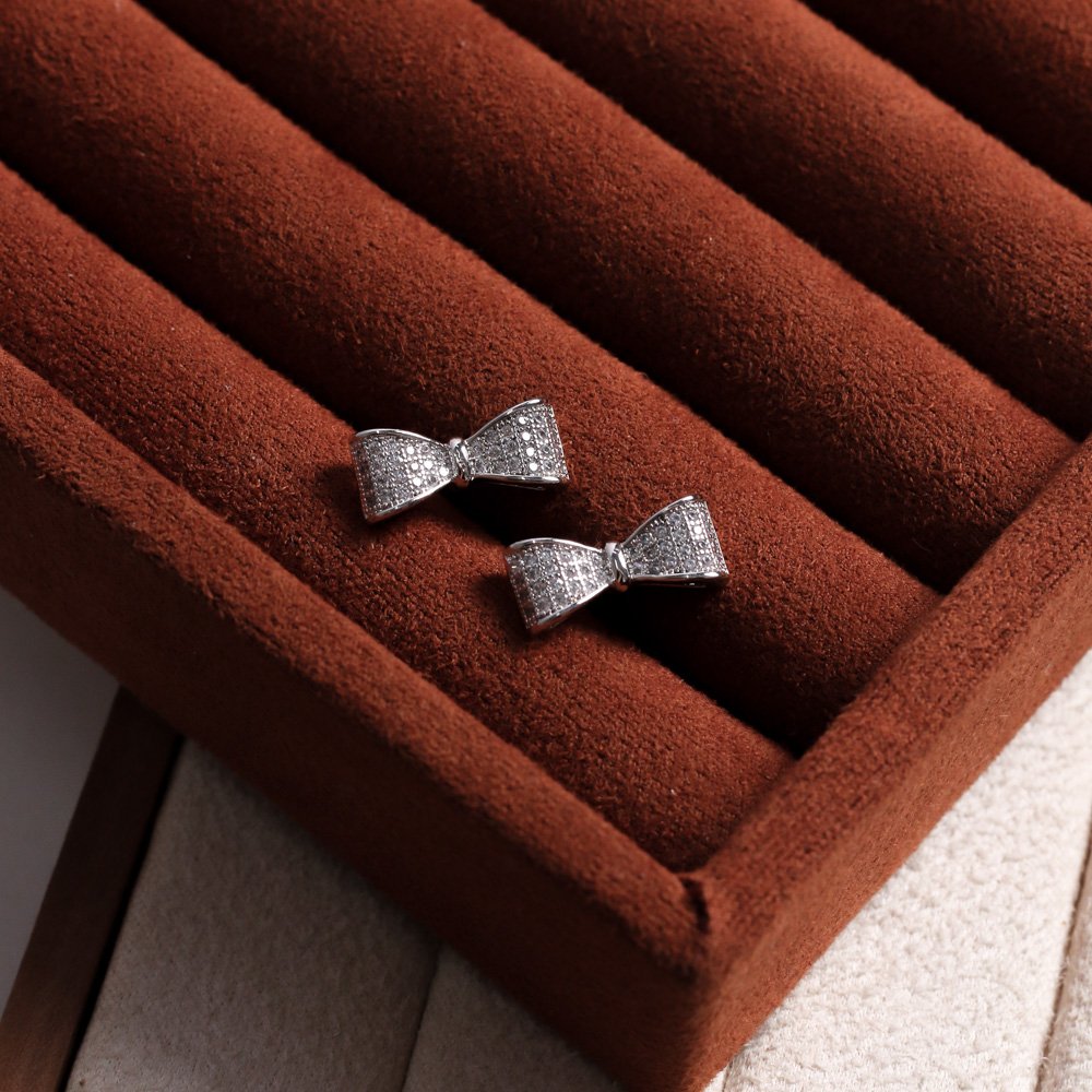 Br-1122-Rd Brinco De Laço Cravejado De Zircônias Cristais - Ródio Branco.