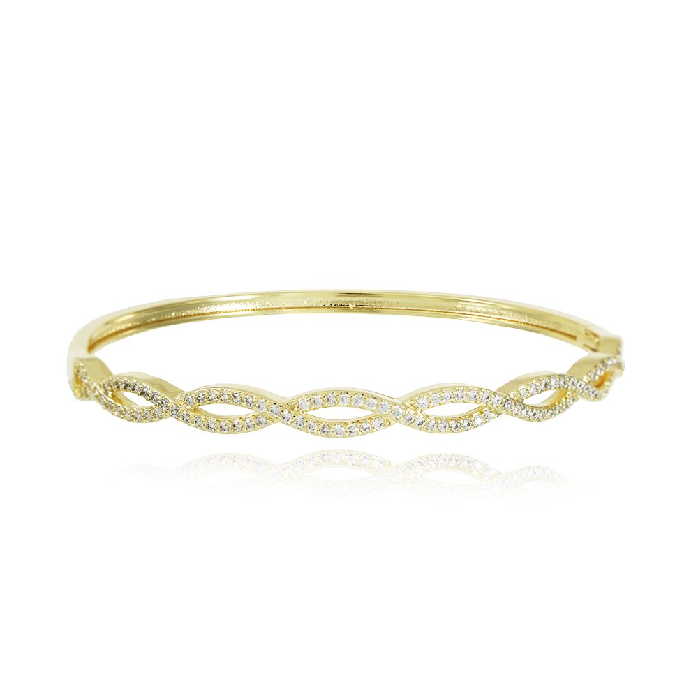 Encante-se com esse bracelete!Este lindo bracelete ENTRELAÇADO CRAVEJADO CRISTAL é feito com LATÃO BANHADO A OURO 18K de alta qualidade.