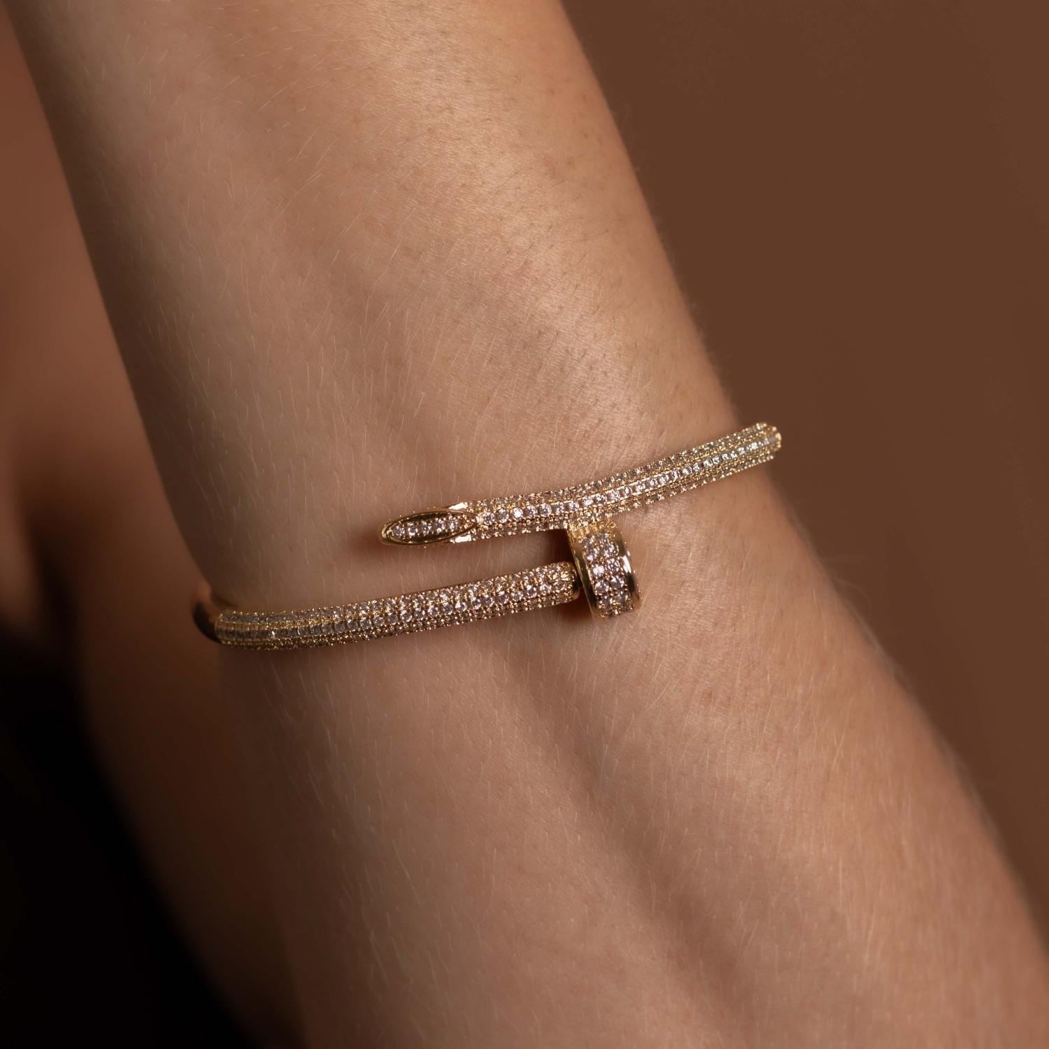 Encante-se com esse bracelete!Este lindo bracelete PREGO CRAVEJADO CRISTAL é feito com LATÃO BANHADO A OURO 18K de alta qualidade.