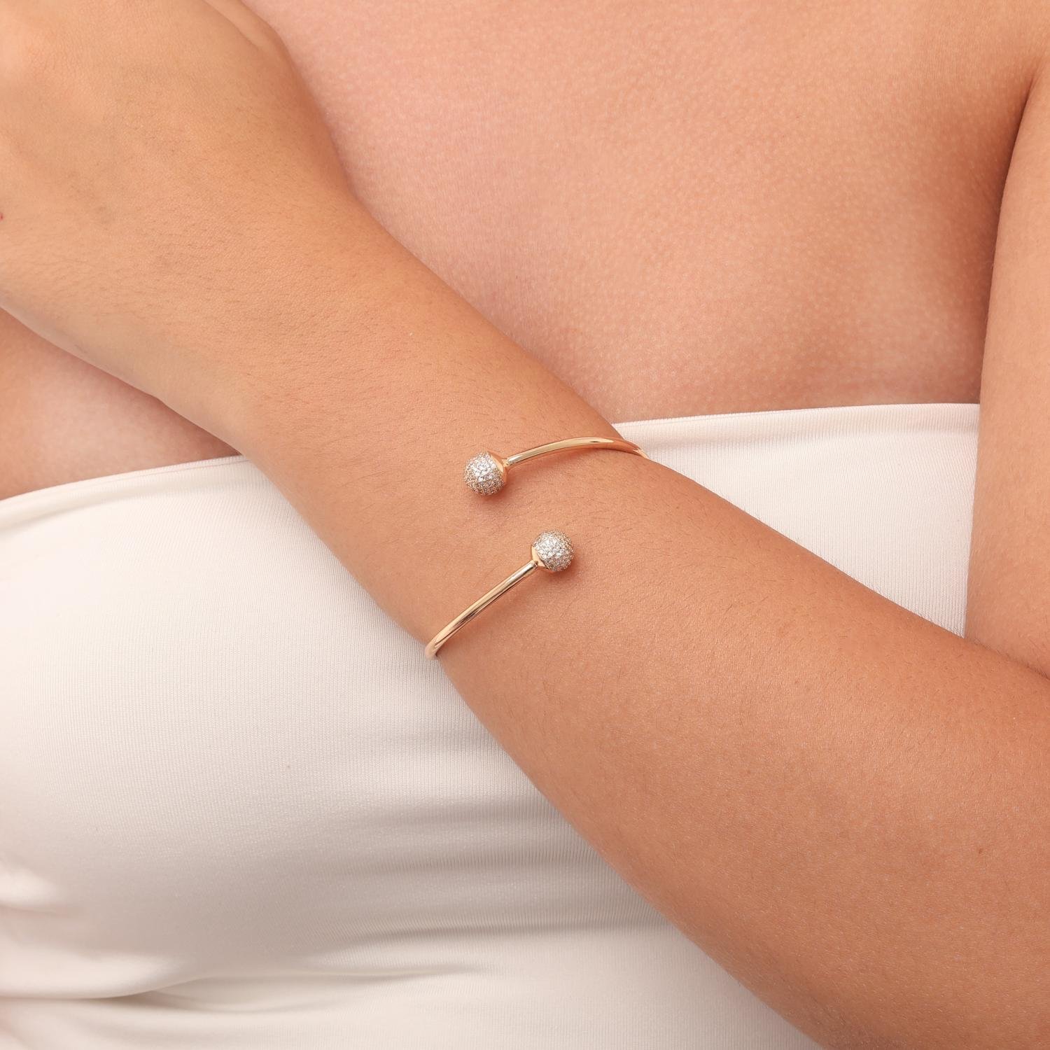 Encante-se com esse bracelete!Este Bracelete Dupla Esfera Cravejada 9mm. é feito com LATÃO BANHADO A OURO 18K de alta qualidade.
