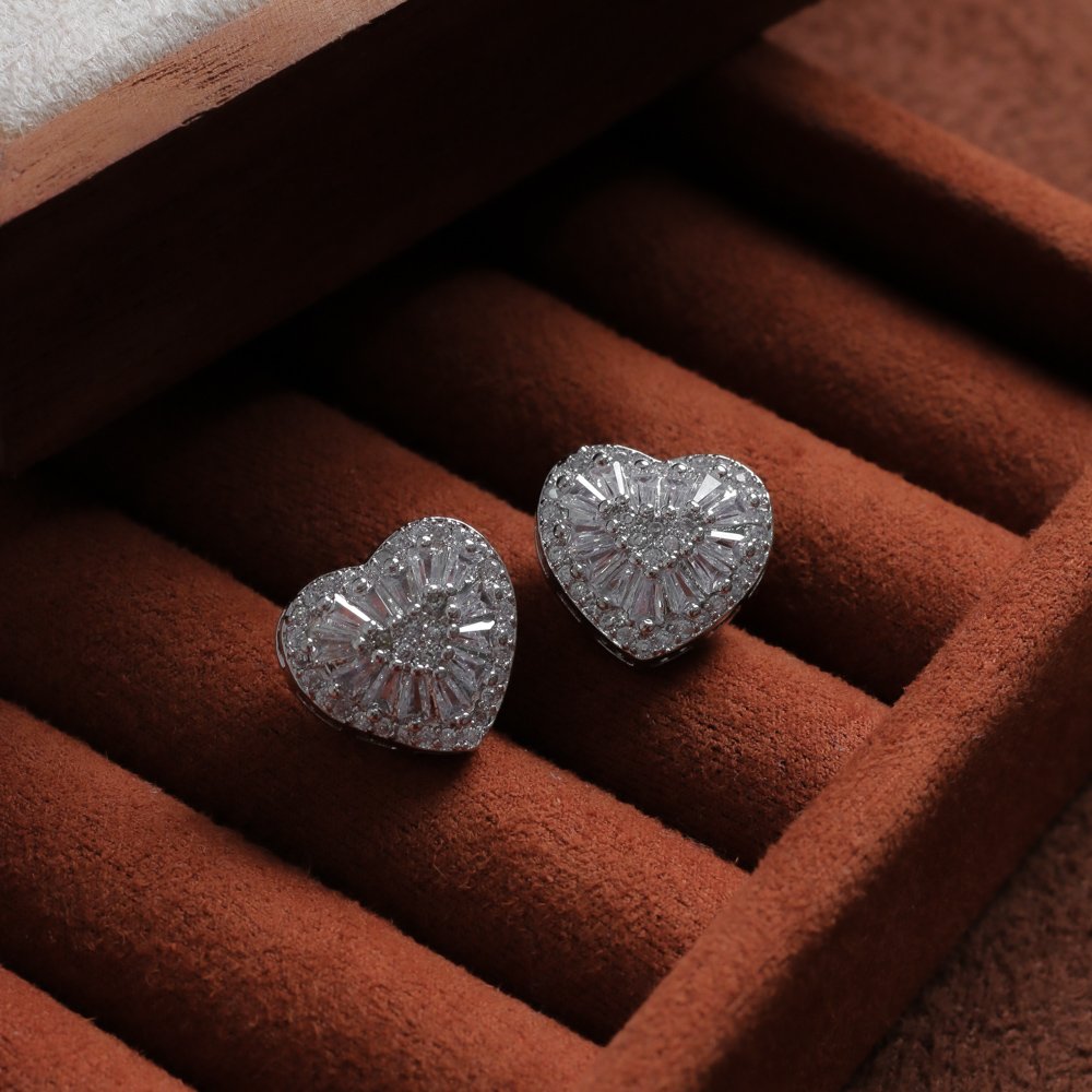 Encante-se com esse brinco!Este lindo brinco DE CORAÇÃO CRAVEJADO DE ZIRCÔNIAS CRISTAIS é feito com LATÃO BANHADO A RÓDIO BRANCO alta qualidade.