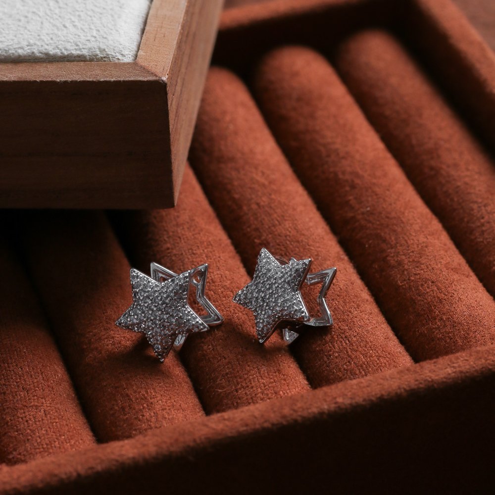 Encante-se com esse brinco!Este lindo brinco DE ARGOLA ARTICULADA DE ESTRELA CRAVEJADO CRISTAL é feito com LATÃO BANHADO A RÓDIO BRANCO alta qualidade.