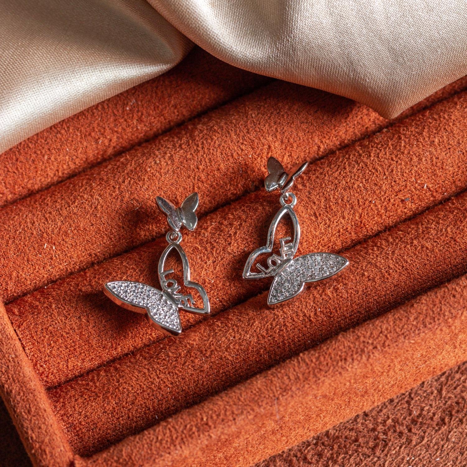 Encante-se com esse brinco!Este lindo brinco BORBOLETAS CRAVEJADO ESCRITO LOVE é feito com LATÃO de alta qualidade.