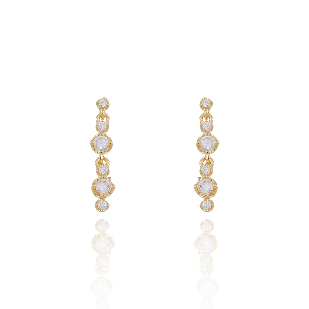 Encante-se com esse brinco!Este lindo brinco DE PÊNDULO CRAVEJADO DE ZIRCÔNIAS CRISTAIS é feito com LATÃO BANHADO A OURO 18K de alta qualidade.