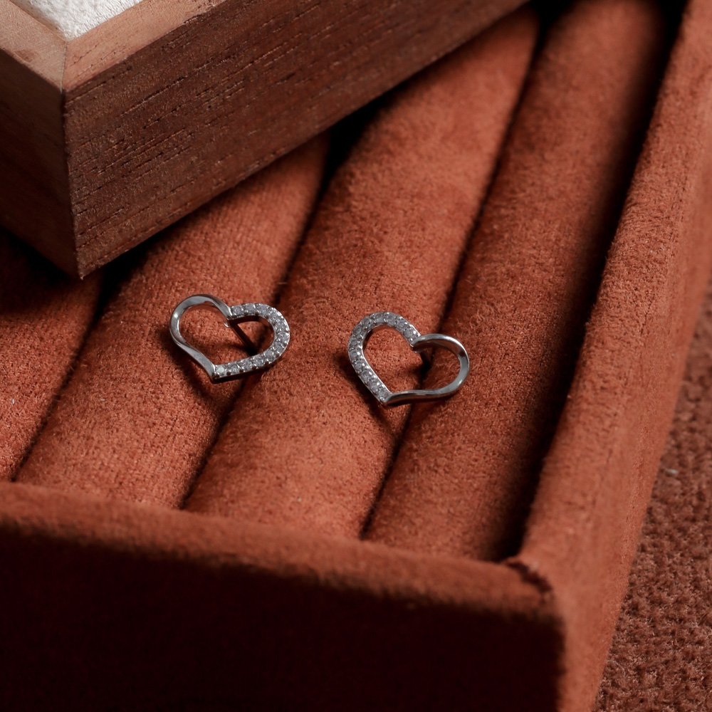 Brf-1099-Rd Brinco De Coração Vazado Cravejado E Liso - Ródio Branco.