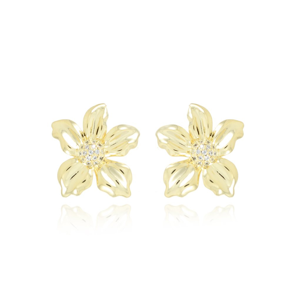 Encante-se com esse brinco!Este lindo brinco DE FLOR CRAVEJADO CRISTAL é feito com LATÃO BANHADO A OURO 18K de alta qualidade.