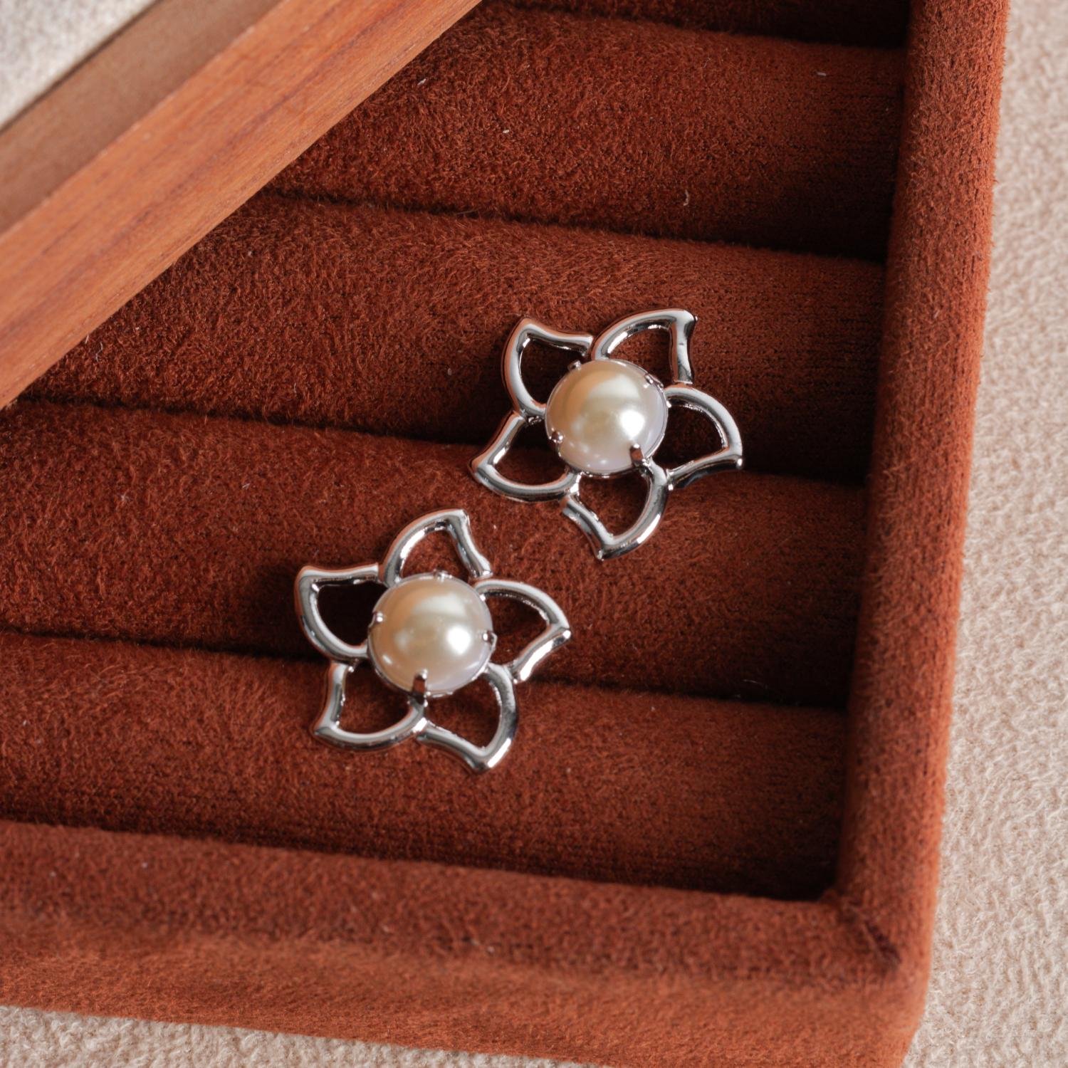 Brf-1130-Rd Brinco De Flor Vazado Com Pérola - Ródio Branco.