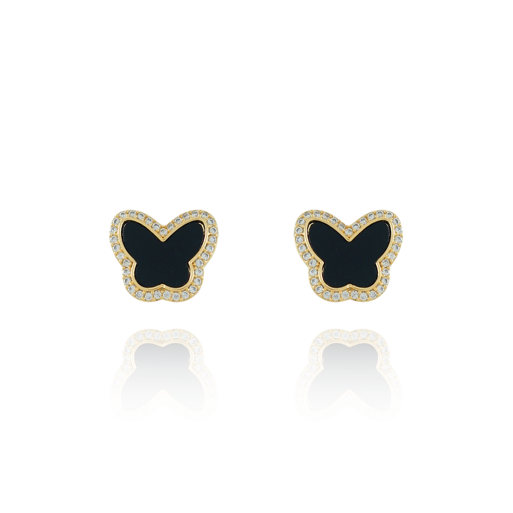 Brf-1142-Do Brinco De Borboleta Cravejado Cristal Madreperola Preto.