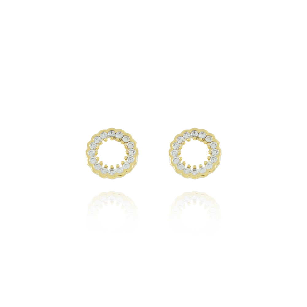 Encante-se com esse brinco!Este lindo brinco CRAVEJADO DE ZIRCÔNIAS CRISTAIS é feito com LATÃO BANHADO A OURO 18K de alta qualidade.