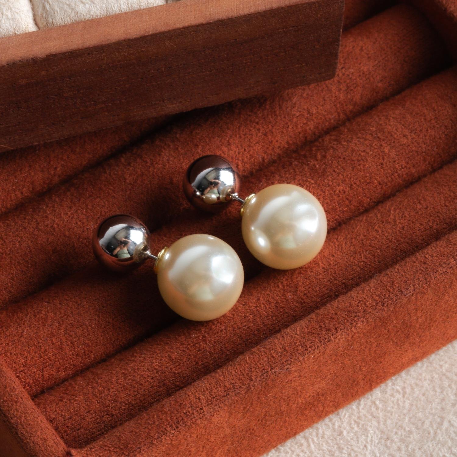 Brf-1154-Rd Brinco De Bolinha Com Tarraxa De Pérola - Ródio Branco (10mm / 14mm).