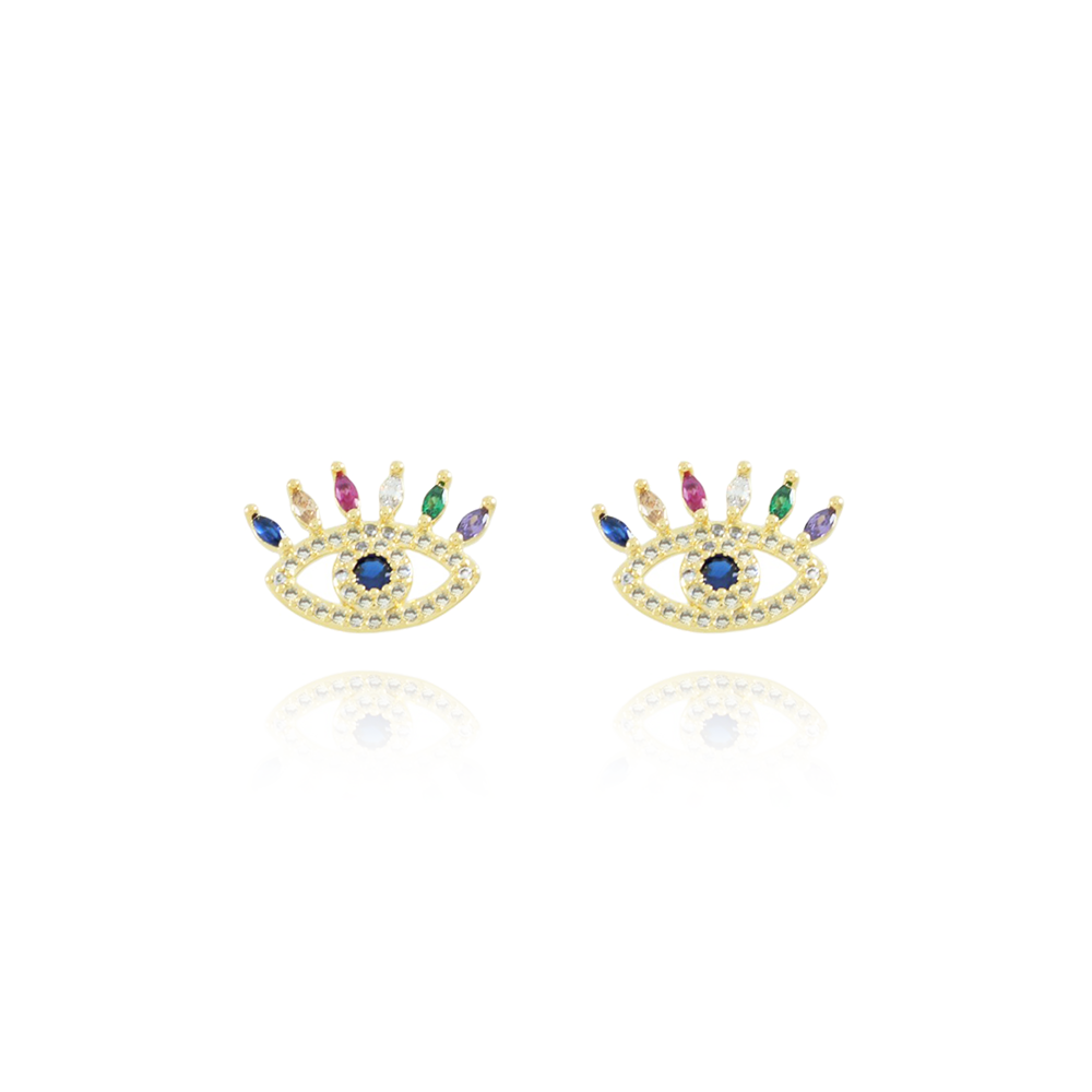Encante-se com esse brinco!Este lindo brinco DE OLHO GREGO CRAVEJADO CRISTAL + COLORIDO é feito com LATÃO BANHADO A OURO 18K de alta qualidade.