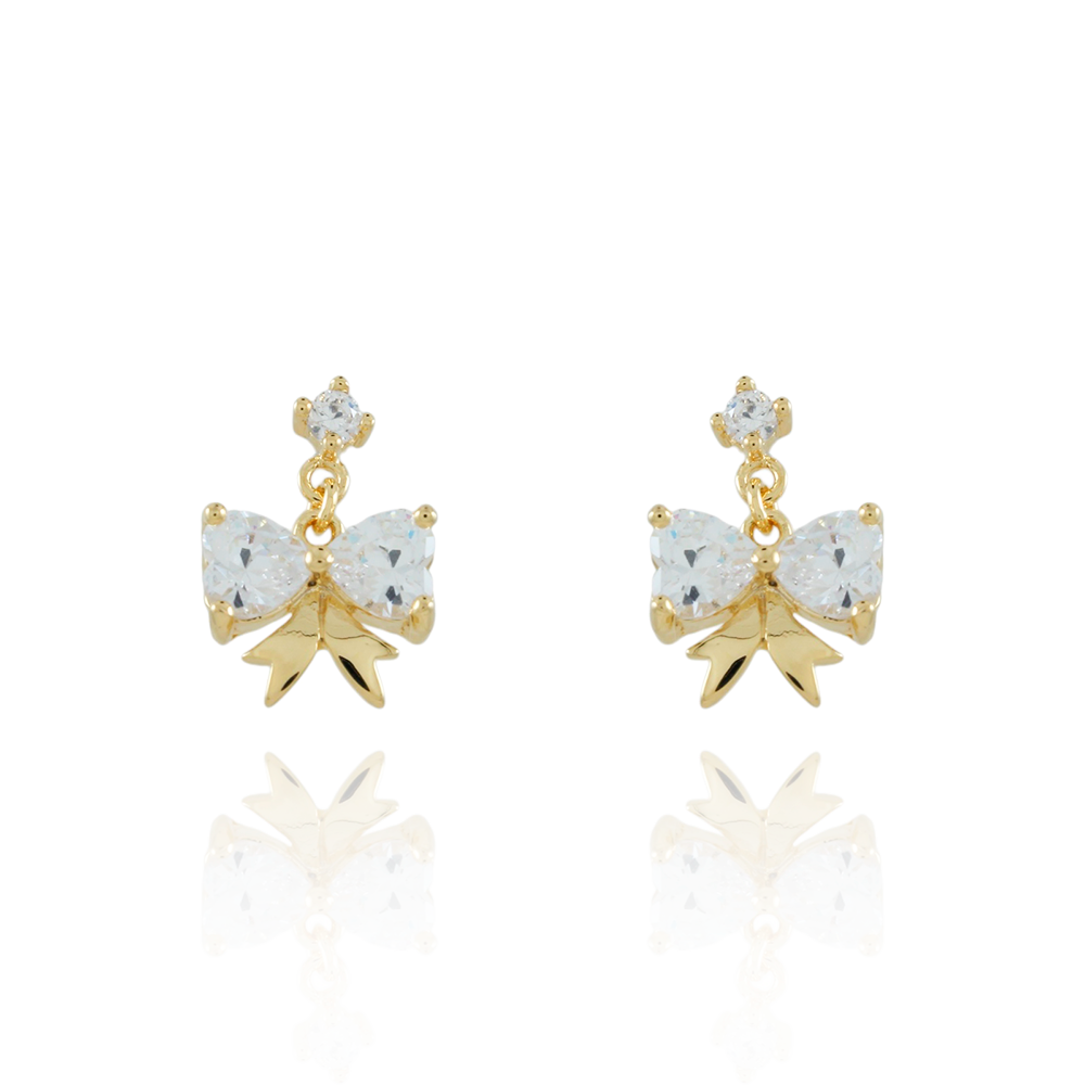 Encante-se com esse brinco!Este lindo brinco DE LAÇO CRAVEJADO DE ZIRCÔNIAS CRISTAIS é feito com LATÃO BANHADO A OURO 18K de alta qualidade.