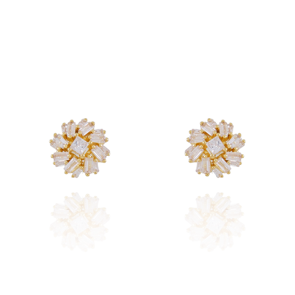 Encante-se com esse brinco!Este lindo brinco DE FLOR CRAVEJADO DE ZIRCÔNIAS CRISTAIS é feito com LATÃO BANHADO A OURO 18K de alta qualidade.