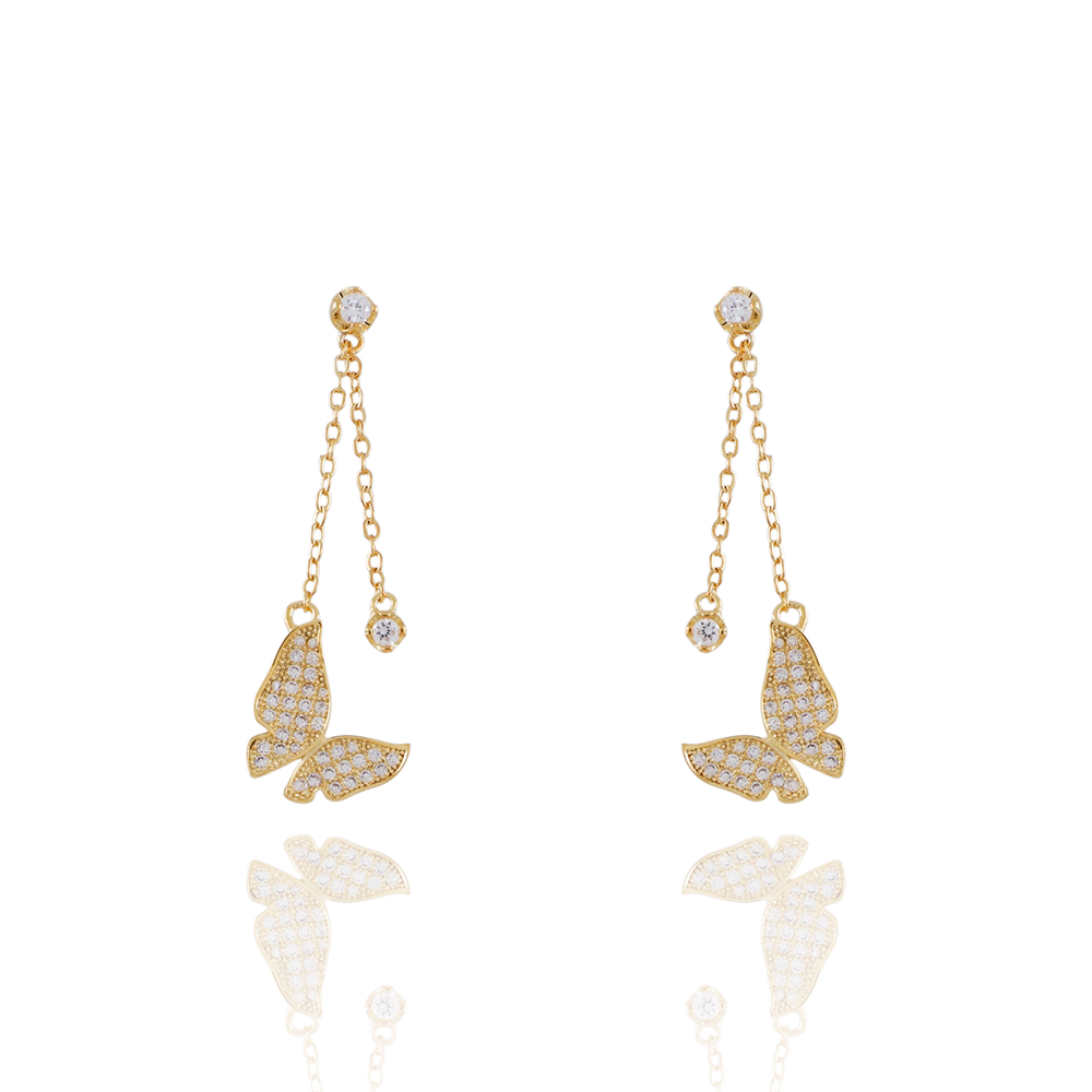 Encante-se com esse brinco!Este lindo brinco PÊNDULO DE BORBOLETA CRISTAL é feito com LATÃO BANHADO A OURO 18K de alta qualidade.