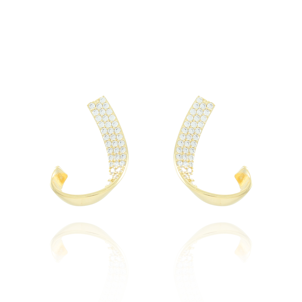 Encante-se com esse brinco!Este lindo brinco CURVA CRAVEJADO CRISTAL é feito com LATÃO BANHADO A OURO 18K de alta qualidade.