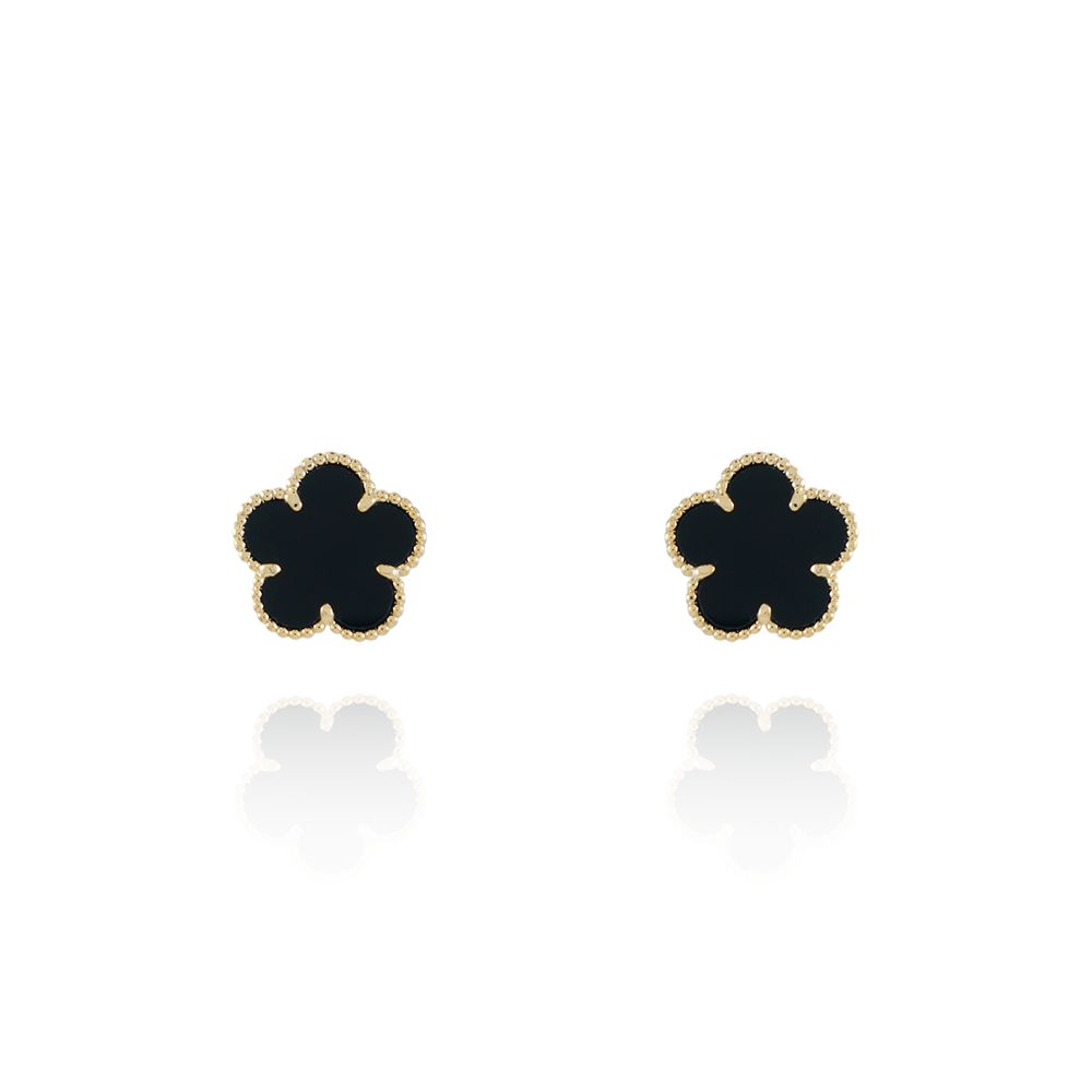 Encante-se com esse brinco!Este lindo brinco DE FLOR PRETO é feito com LATÃO BANHADO A OURO 18K de alta qualidade.