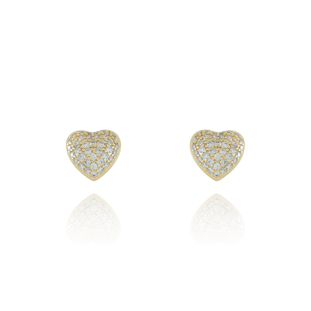 Encante-se com esse brinco!Este lindo brinco DE CORAÇÃO CRAVEJADO DE ZIRCÔNIAS CRISTAIS é feito com LATÃO BANHADO A OURO 18K de alta qualidade.