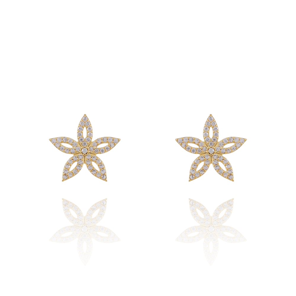 Encante-se com esse brinco!Este lindo brinco DE FLOR CRAVEJADO DE ZIRCÔNIAS CRISTAIS é feito com LATÃO BANHADO A OURO 18K de alta qualidade.