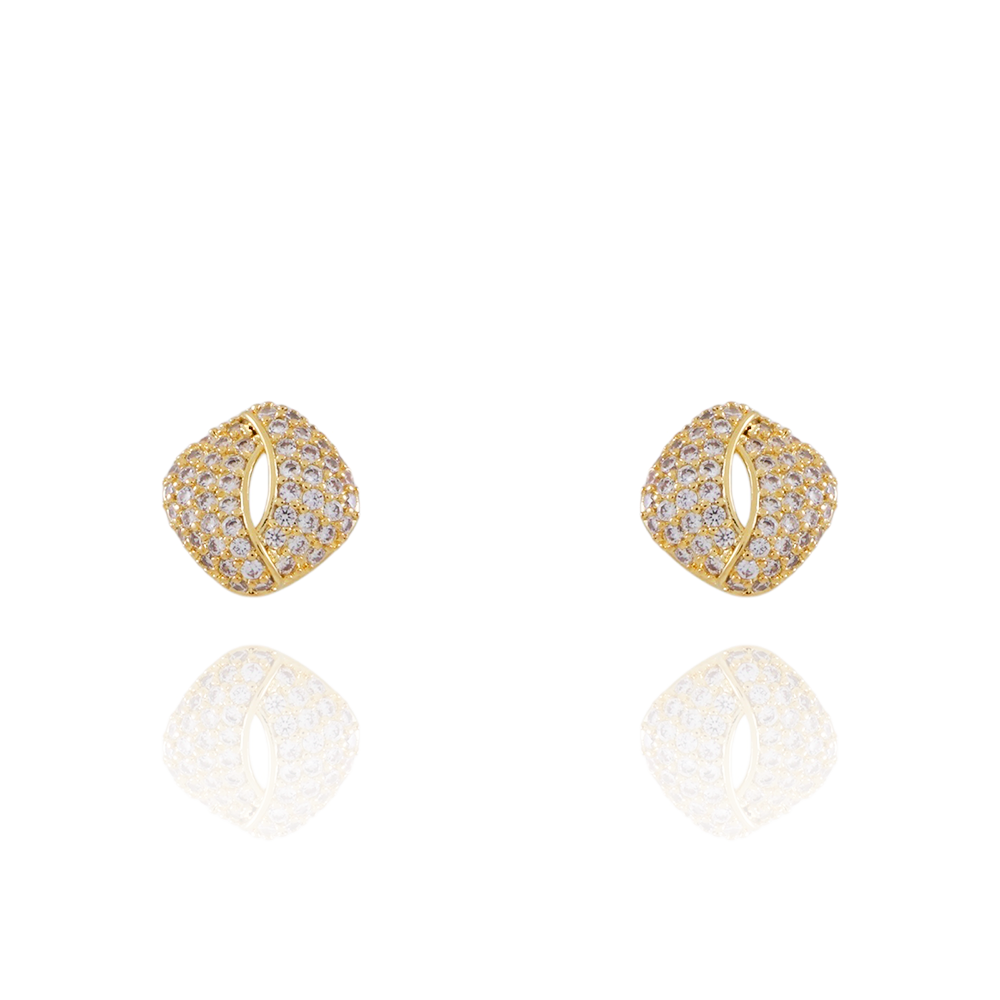 Encante-se com esse brinco!Este lindo brinco CRAVEJADO DE ZIRCÔNIAS CRISTAIS é feito com LATÃO BANHADO A OURO 18K de alta qualidade.