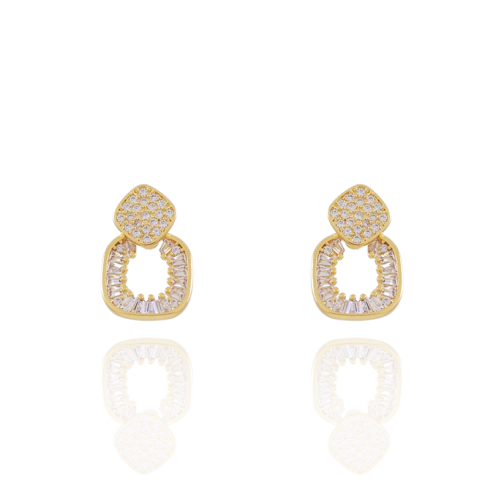 Encante-se com esse brinco!Este lindo brinco CRAVEJADO DE ZIRCÔNIAS CRISTAIS é feito com LATÃO BANHADO A OURO 18K de alta qualidade.