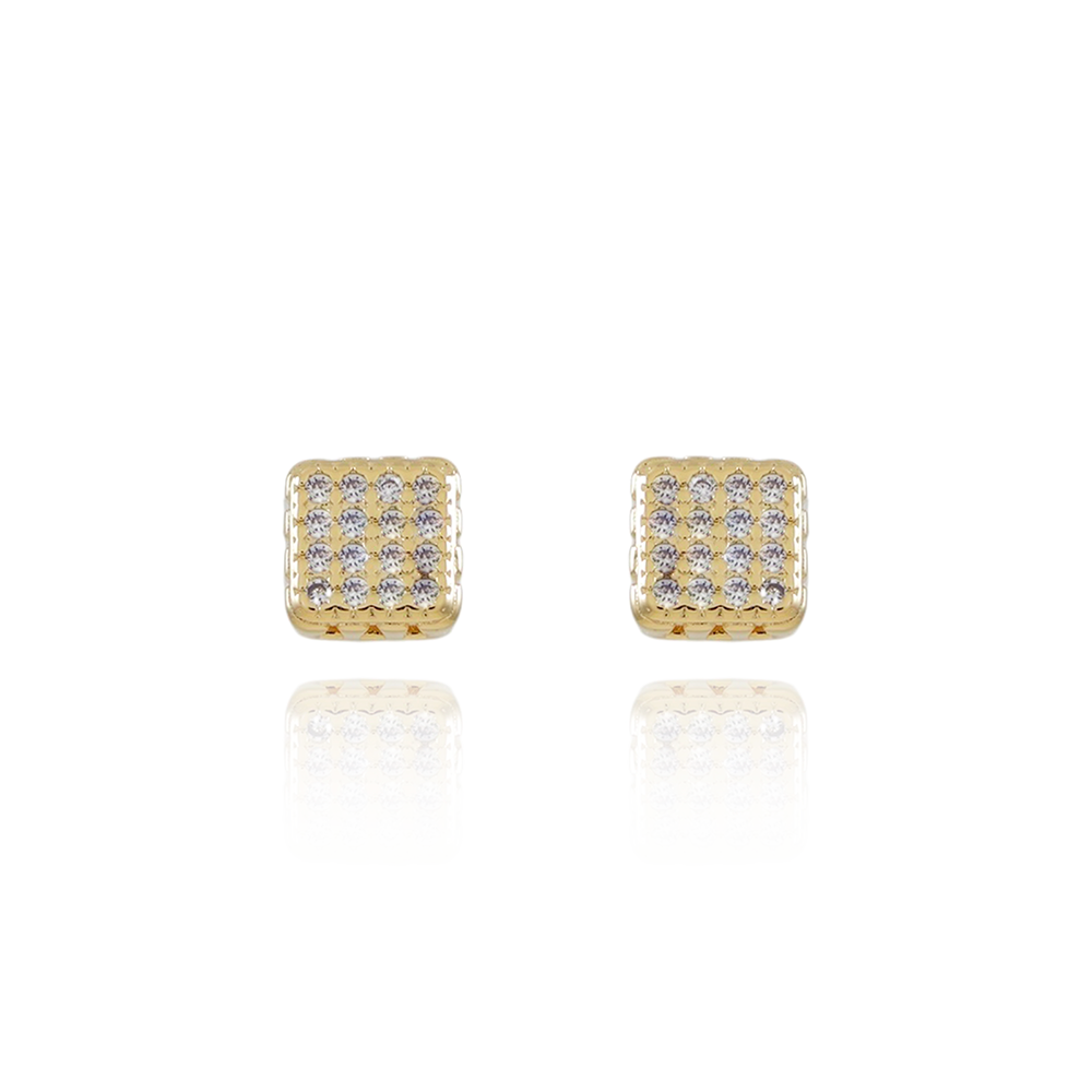 Encante-se com esse brinco!Este lindo brinco QUADRADO CRAVEJADO DE ZIRCÔNIAS CRISTAIS é feito com LATÃO BANHADO A OURO 18K de alta qualidade.