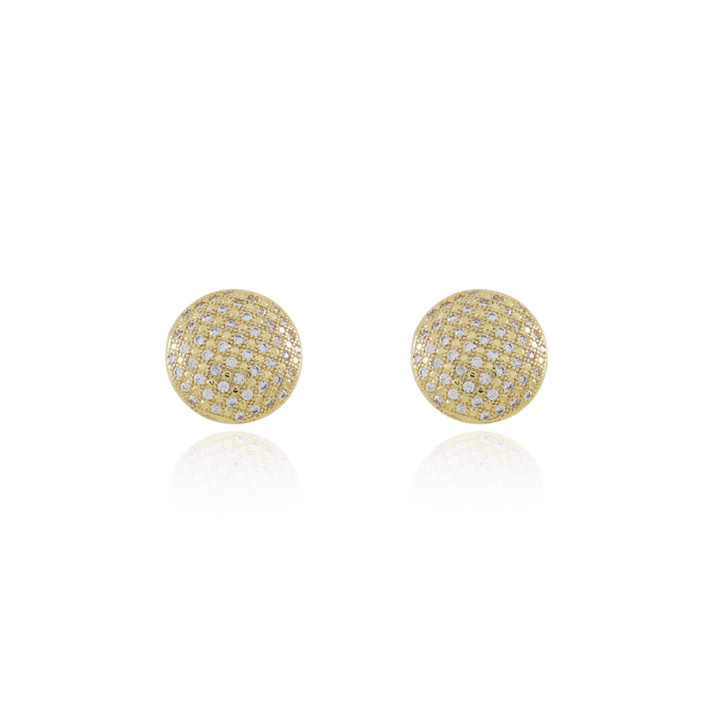 Encante-se com esse brinco!Este lindo brinco REDONDO CRAVEJADO DE ZIRCÔNIAS CRISTAIS é feito com LATÃO BANHADO A OURO 18K de alta qualidade.