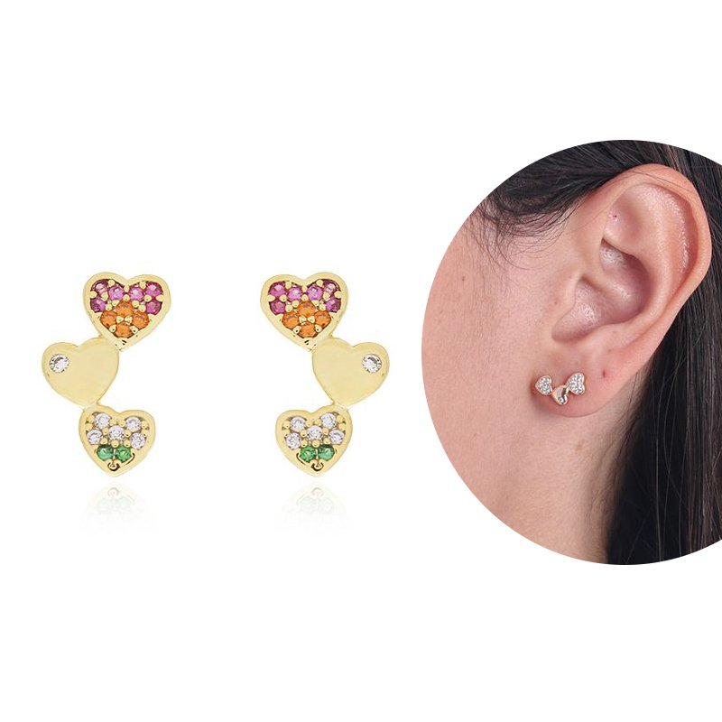 Encante-se com esse brinco!Este lindo brinco DE CORAÇÕES CRAVEJAADO CRISTAL é feito com LATÃO BANHADO A OURO 18K de alta qualidade.
