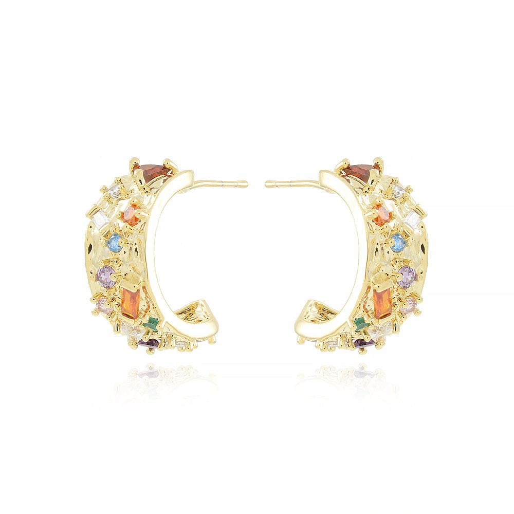 Bri-1072-Do Brinco Meia Argola Cravejada De Zircônias Coloridas (20mm)