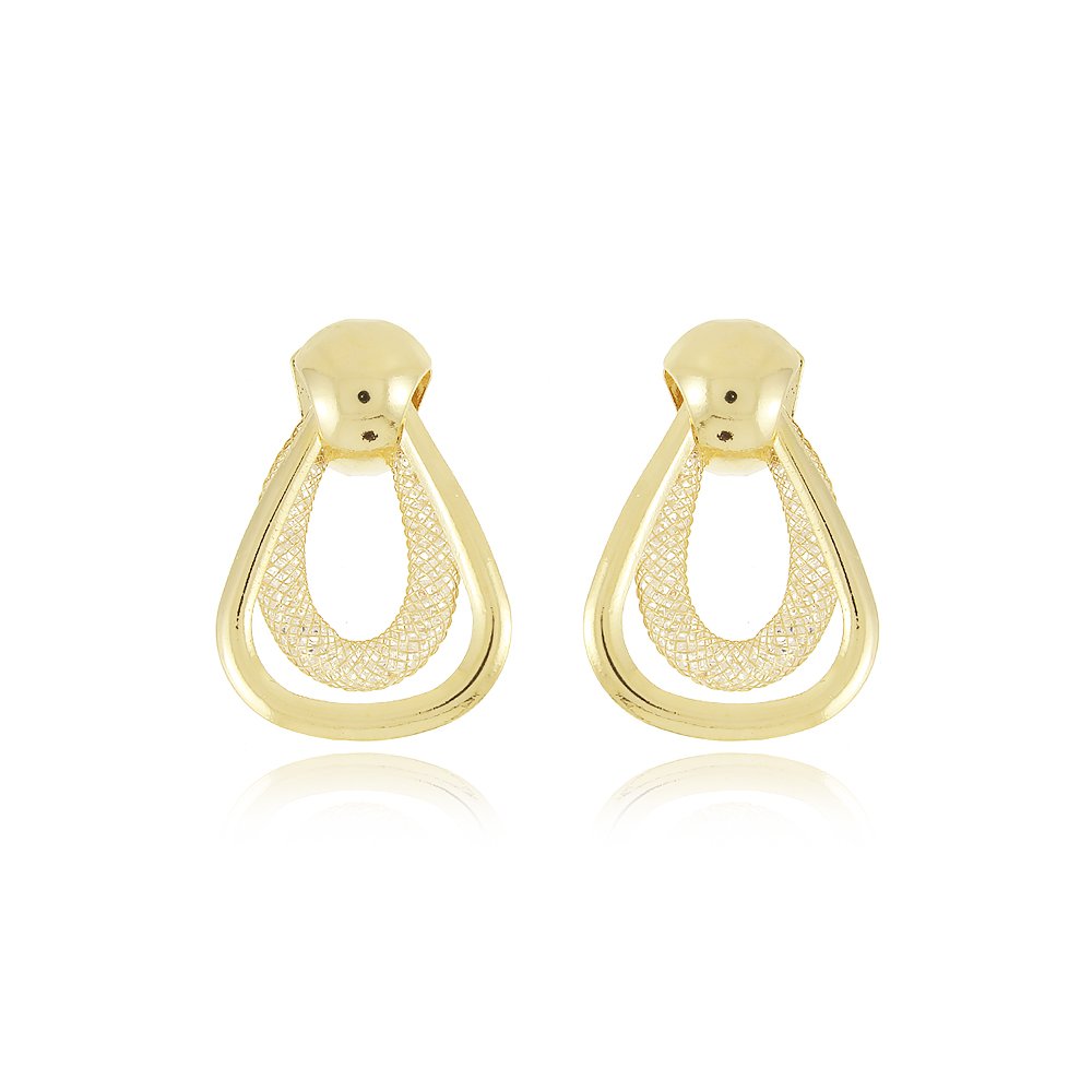 Encante-se com esse brinco!Este lindo brinco DETALHADO DE TELINHA COM PEDRINHAS é feito com LATÃO BANHADO A OURO 18K de alta qualidade.